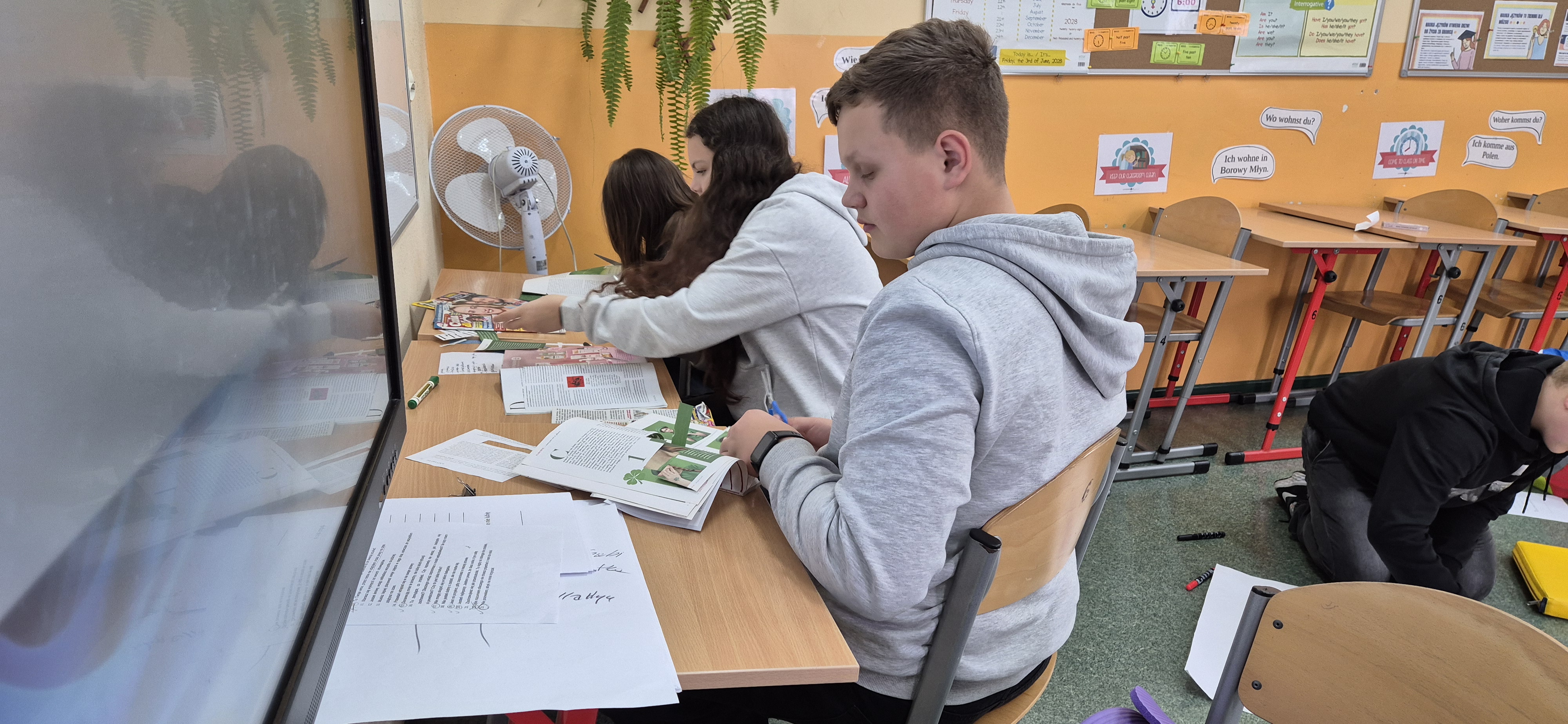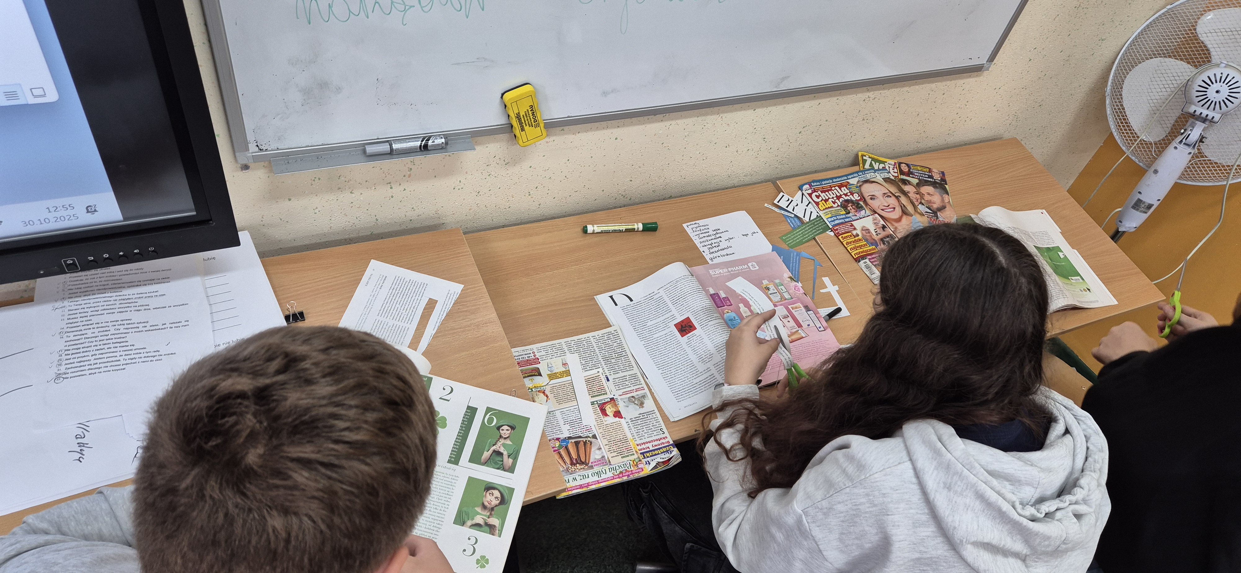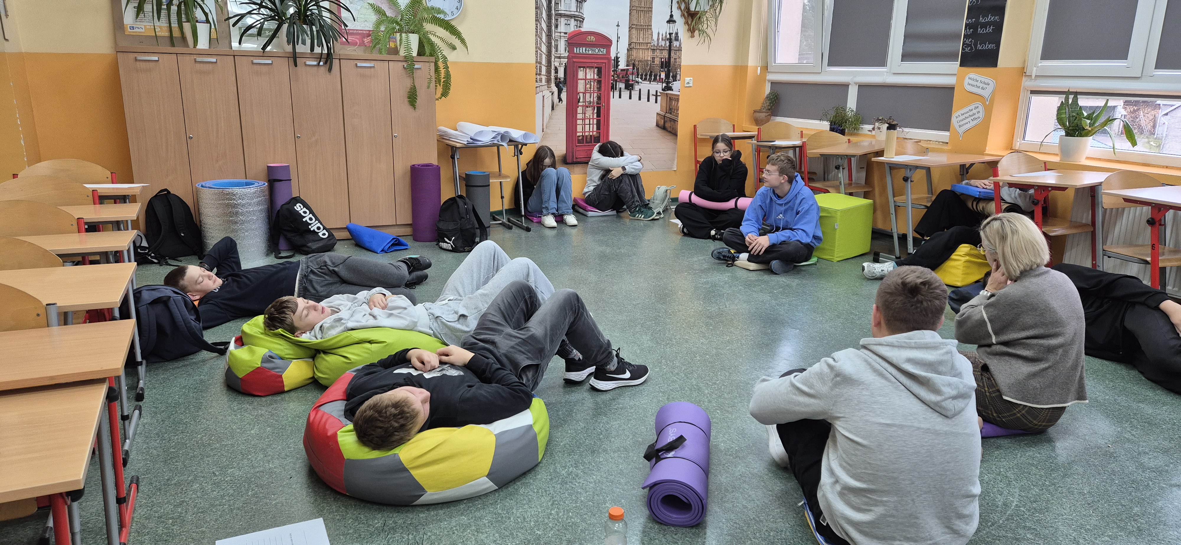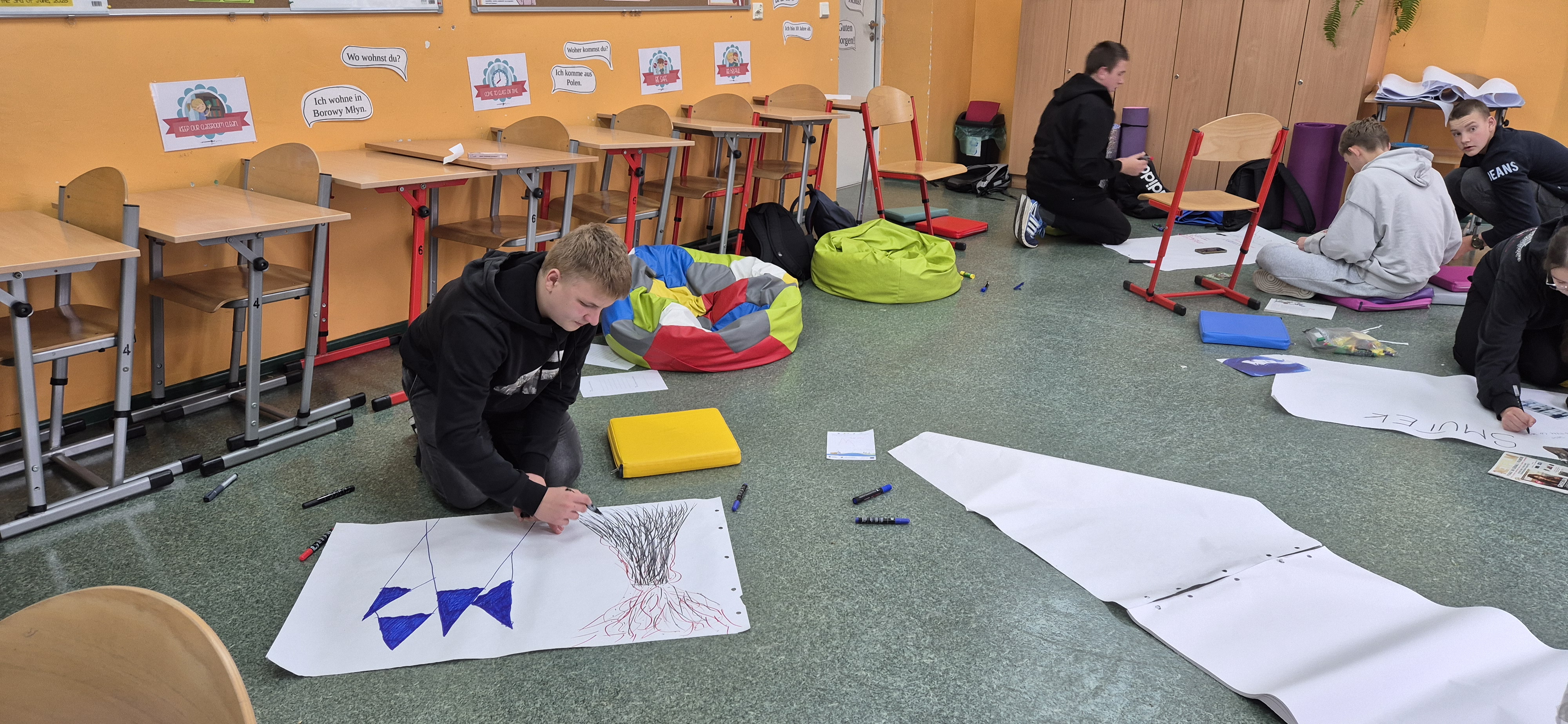 Młodzież wraz z panią Agnieszką Wantoch Rekowską przygotowywała plakaty profilaktyczne, ale też trenowała techniki rozładowywania stresu i negatywnych uczuć.