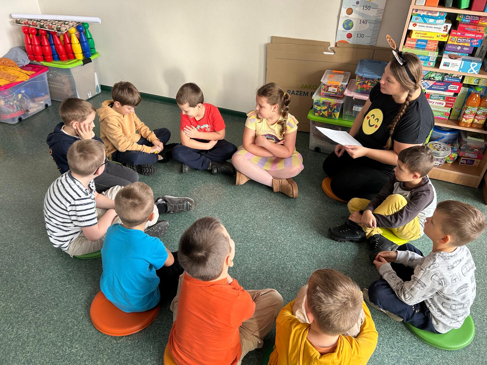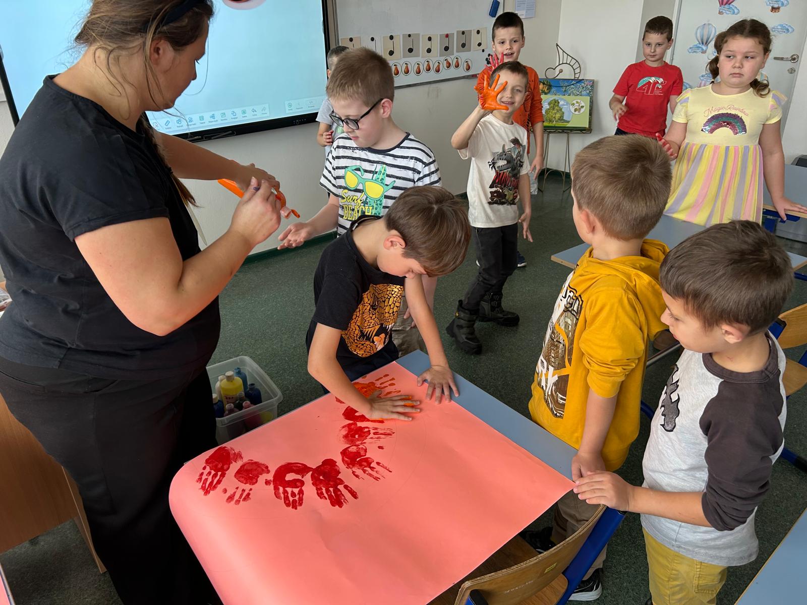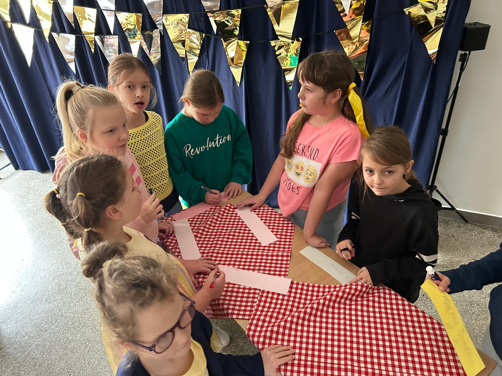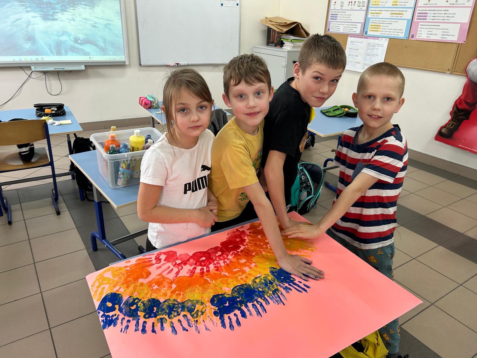 Dzisiaj przedszkolaki i uczniowie wspólnie świętowali Dzień Życzliwości i Pozdrowień. Był to czas pełen uśmiechów, dobrych słów i wspólnej zabawy. Dzieci brały udział w aktywnościach promujących życzliwość, tworzyły drzewa oraz tęcze życzliwości, a także przygotowały łańcuch życzliwości, który symbolicznie połączył nas wszystkich.