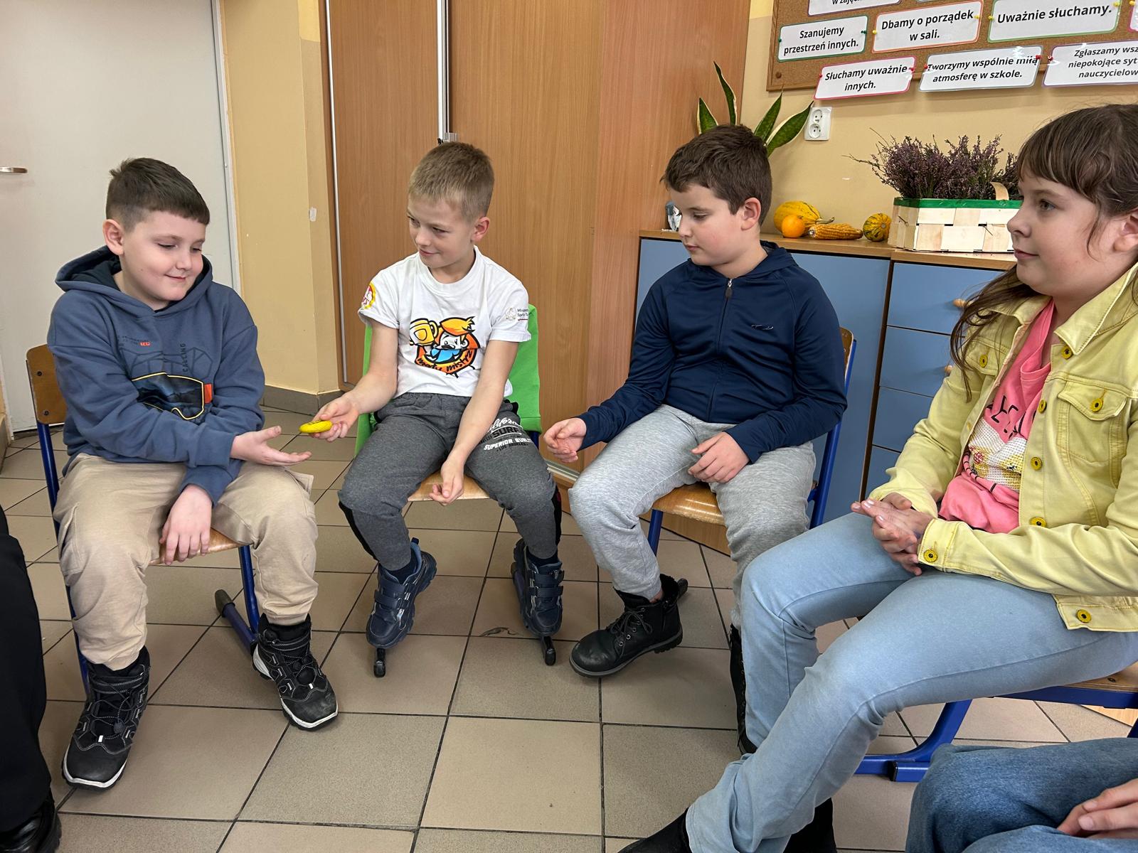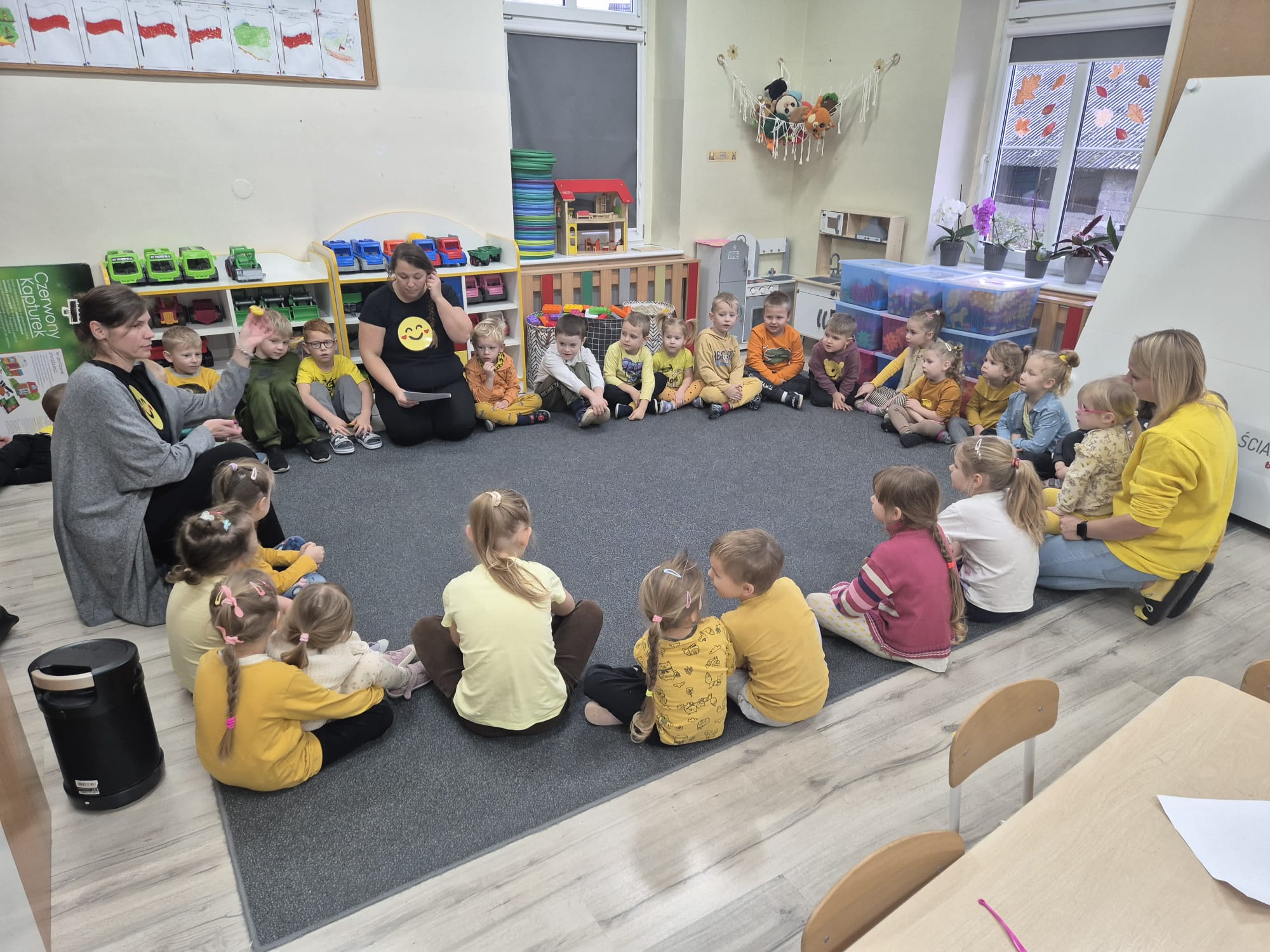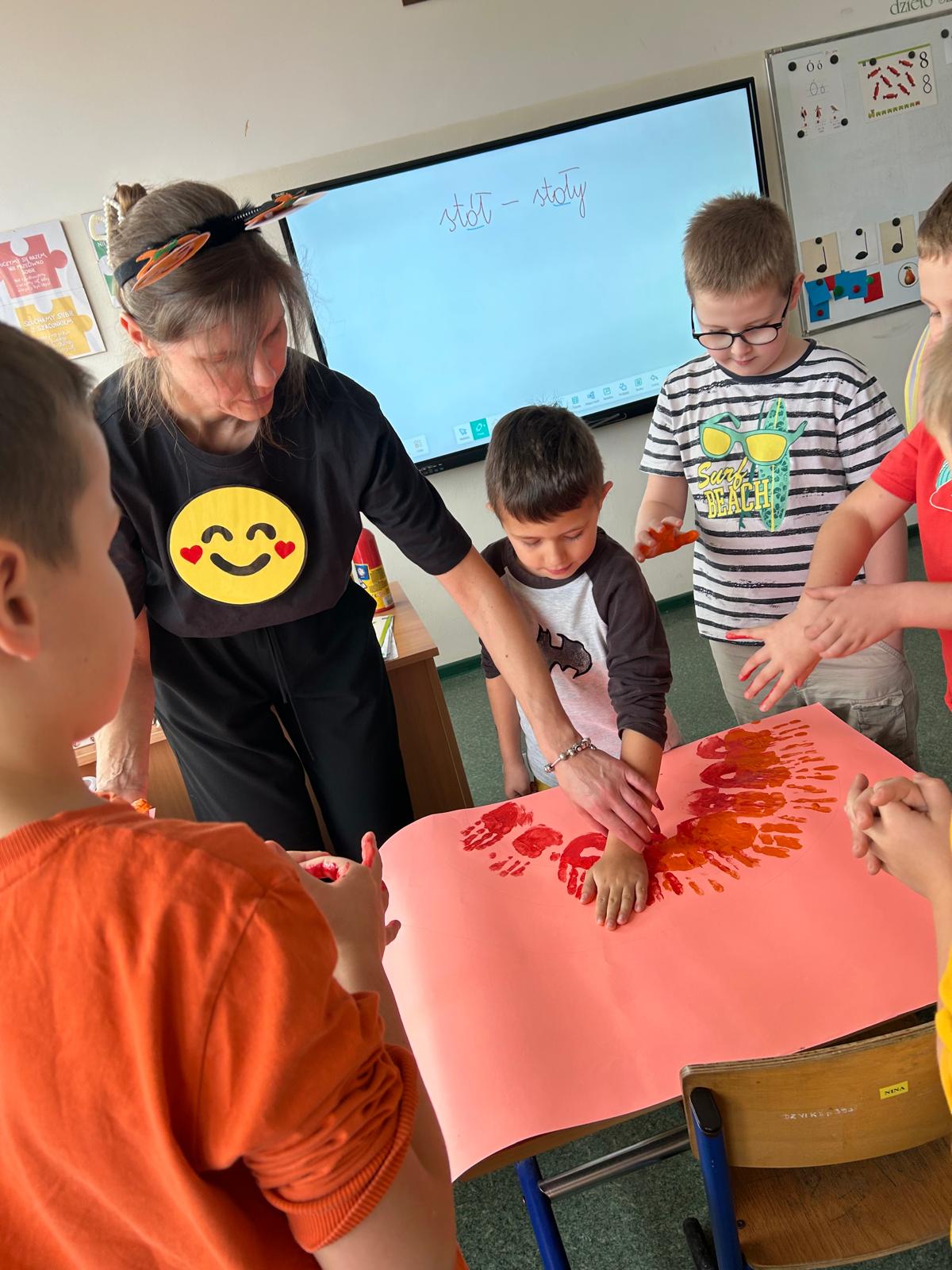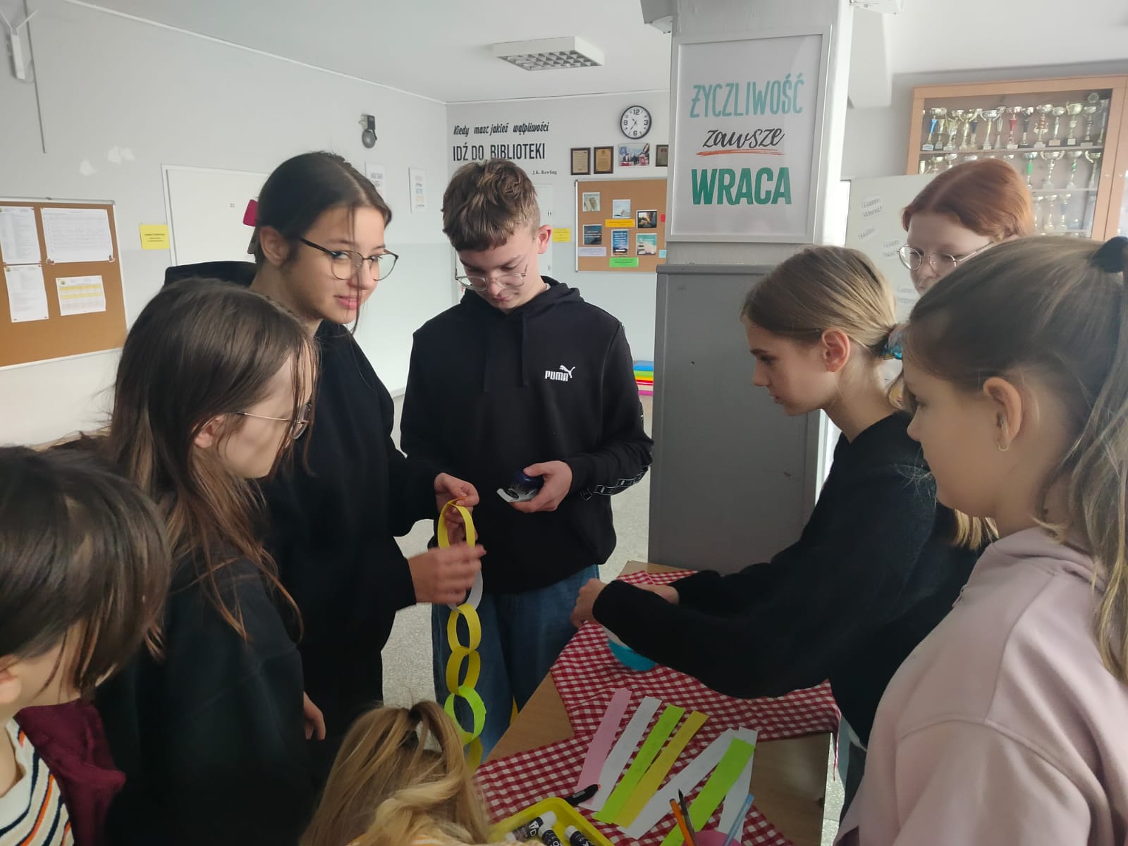 Dzisiaj przedszkolaki i uczniowie wspólnie świętowali Dzień Życzliwości i Pozdrowień. Był to czas pełen uśmiechów, dobrych słów i wspólnej zabawy. Dzieci brały udział w aktywnościach promujących życzliwość, tworzyły drzewa oraz tęcze życzliwości, a także przygotowały łańcuch życzliwości, który symbolicznie połączył nas wszystkich.