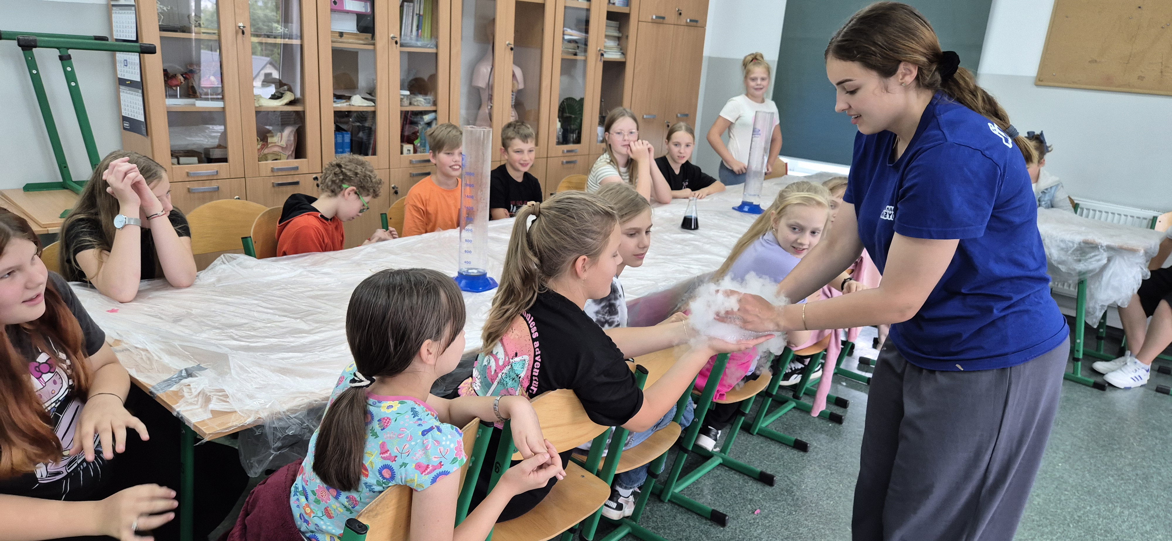 Uczniowie wzięli udział w warsztatach naukowych, pokazie chemicznym z ciekłym azotem, pokazie i warsztatach z suchym lodem, oglądali wystawę zabawek fizycznych i wystawę nowych technologii.