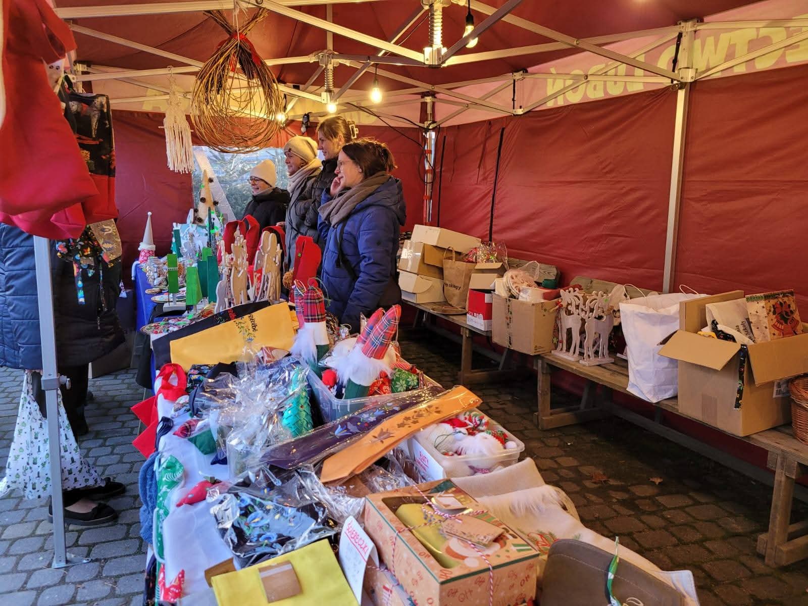 Na naszym stoisku można było zakupić wyjątkowe, własnoręcznie wykonane rękodzieła, które cieszyły się dużym zainteresowaniem. Dzieci z dumą zaprezentowały się na scenie, wykonując piękne kolędy i wprowadzając wszystkich w prawdziwie świąteczny nastrój.