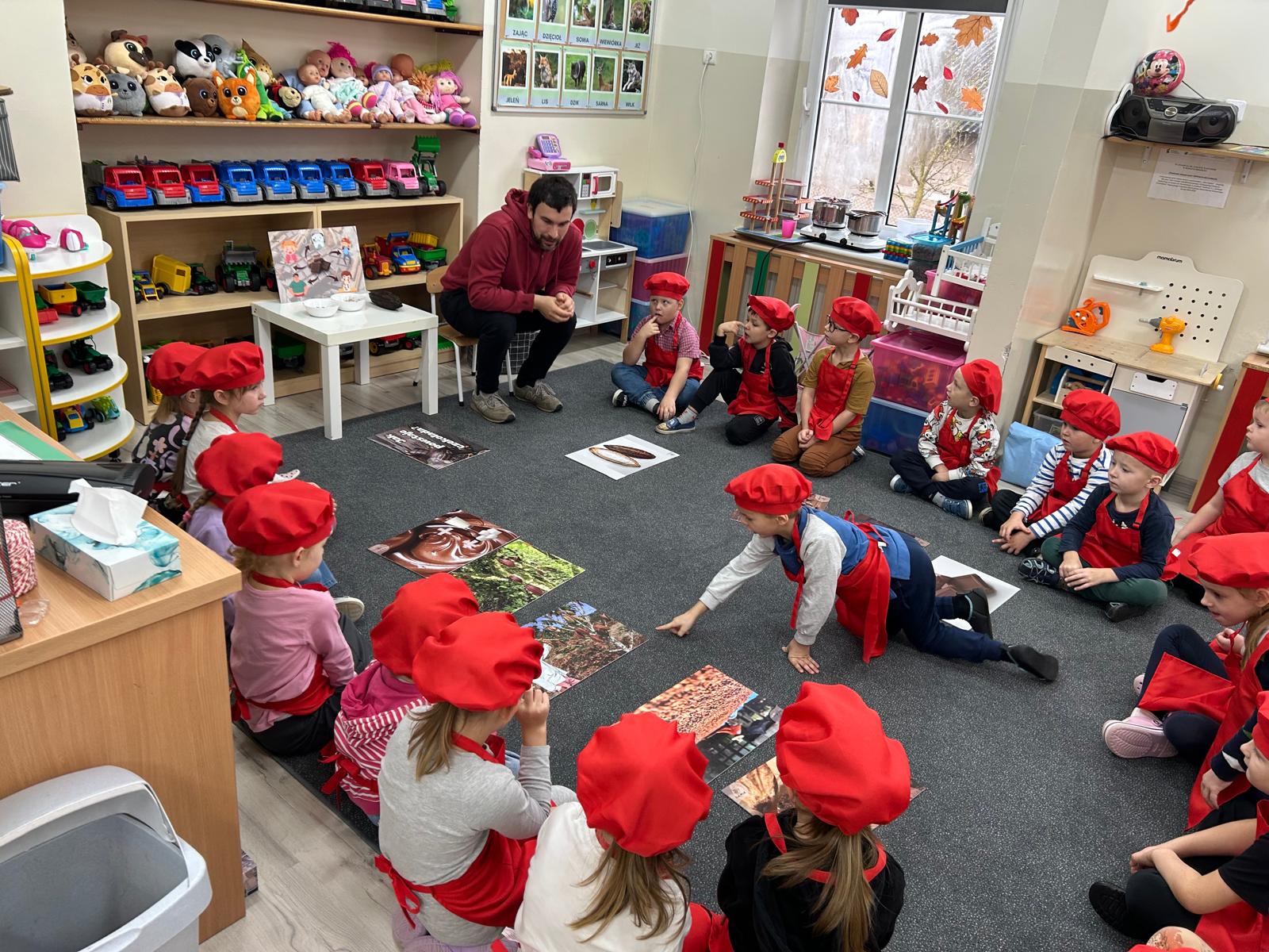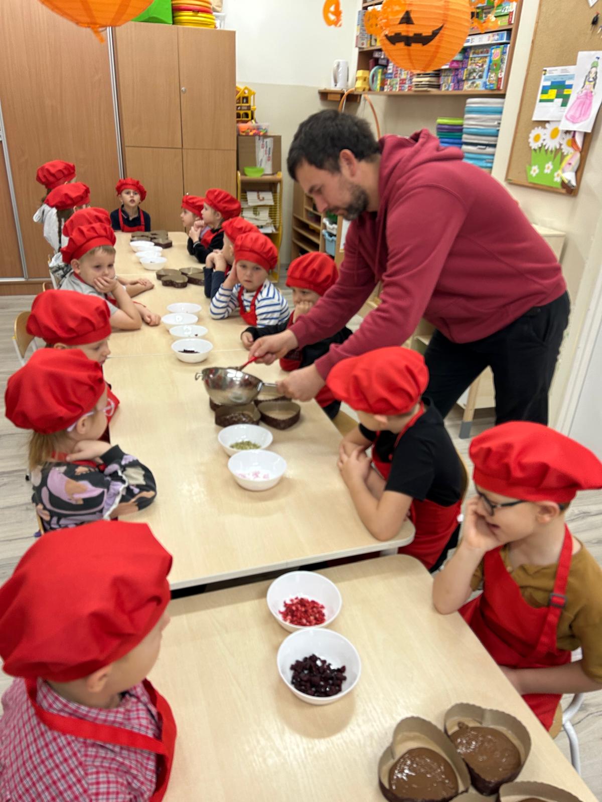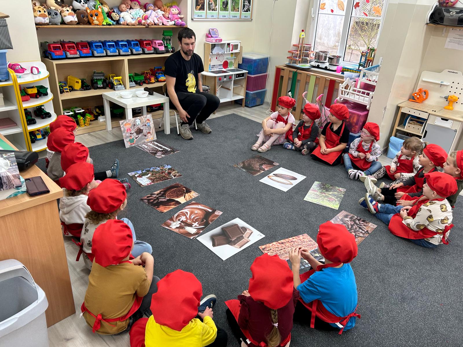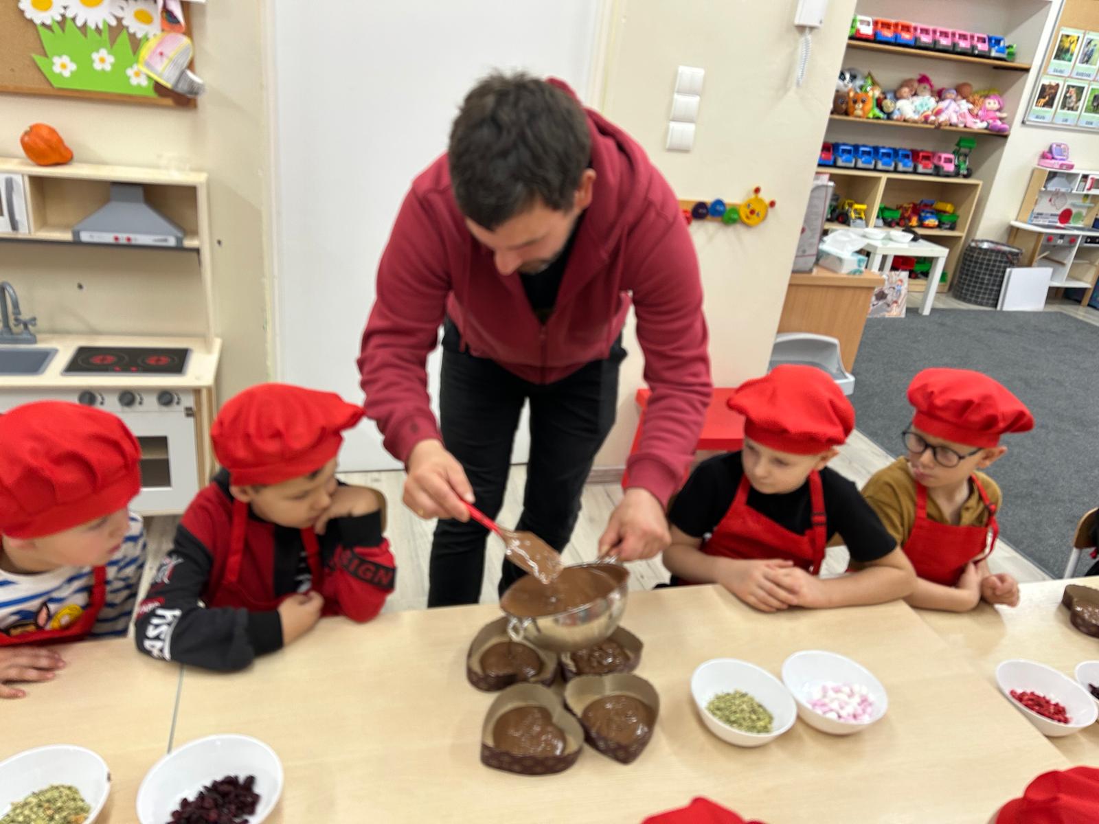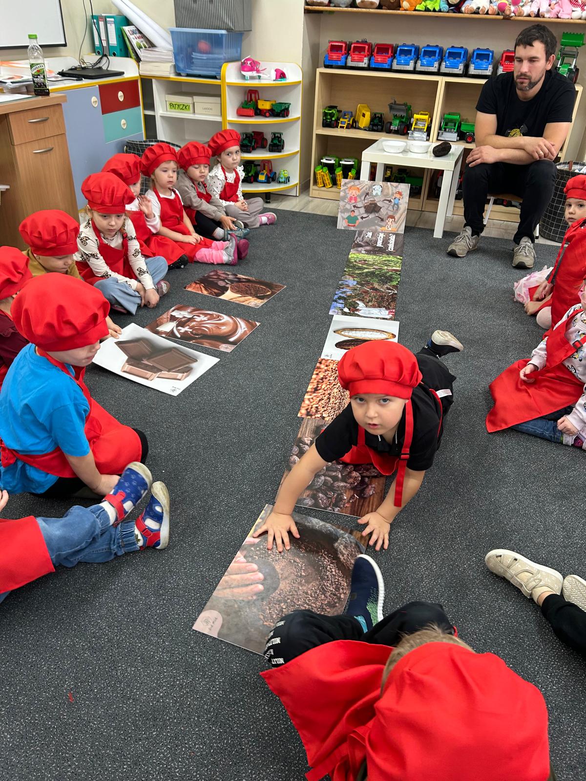 Dziś nasze przedszkolaki wzięły udział w wyjątkowych warsztatach robienia czekolady, które poprowadziła Zagroda Cud Miód. Dzieci poznały fascynującą historię powstania czekolady, zobaczyły prawdziwe ziarna kakaowca, a następnie — z wielkim zaangażowaniem i radością — przygotowały własne tabliczki czekolady z ulubionymi dodatkami.