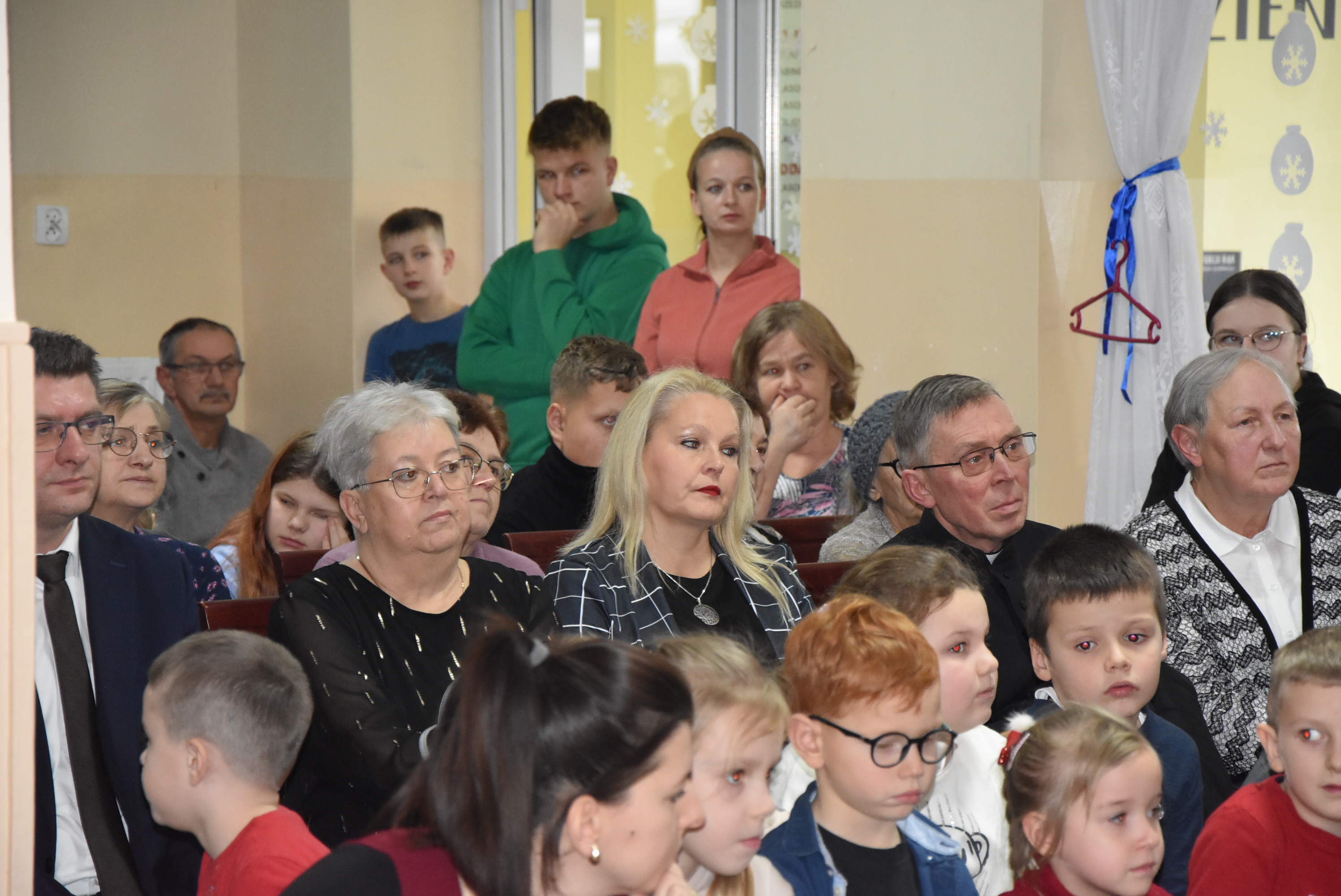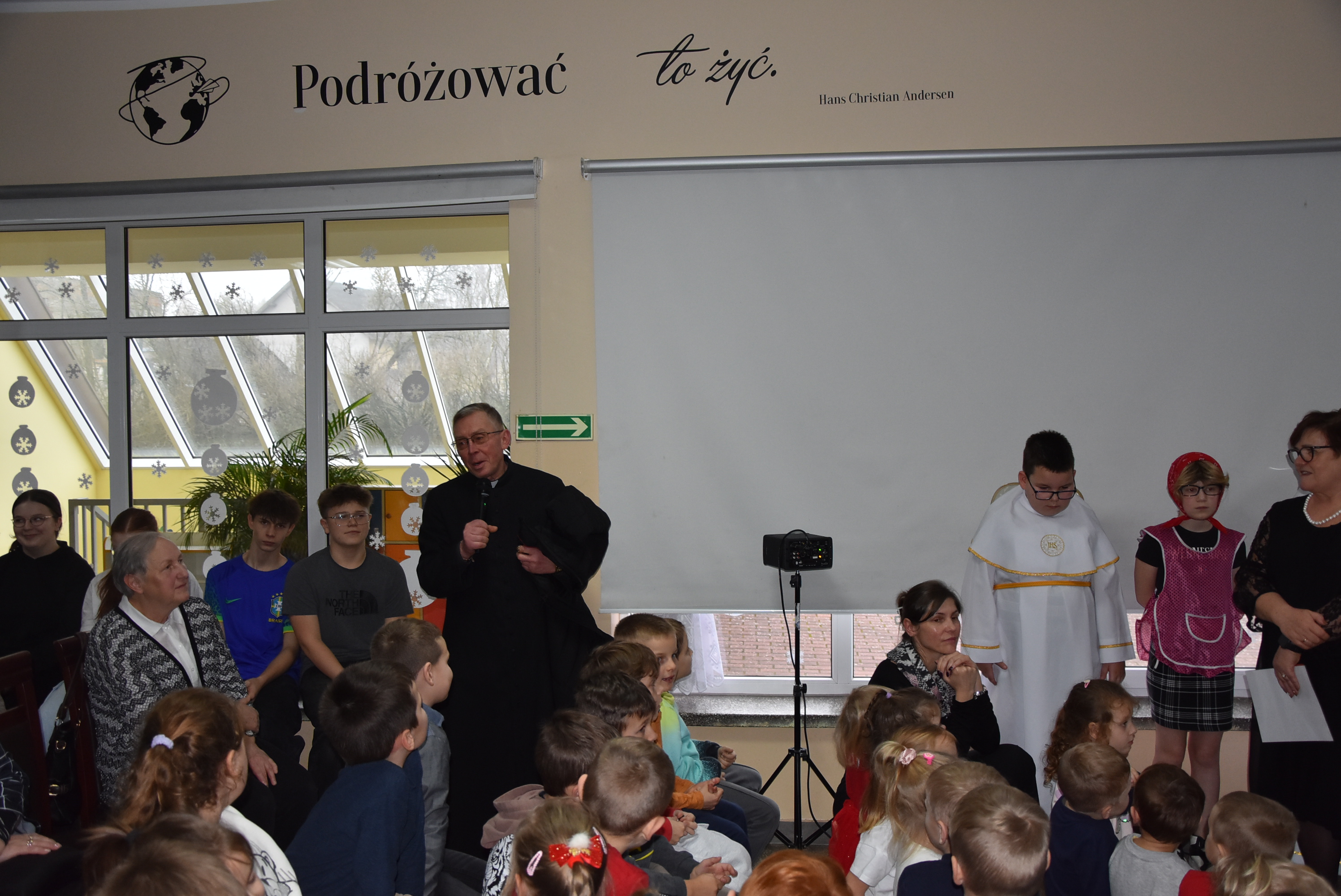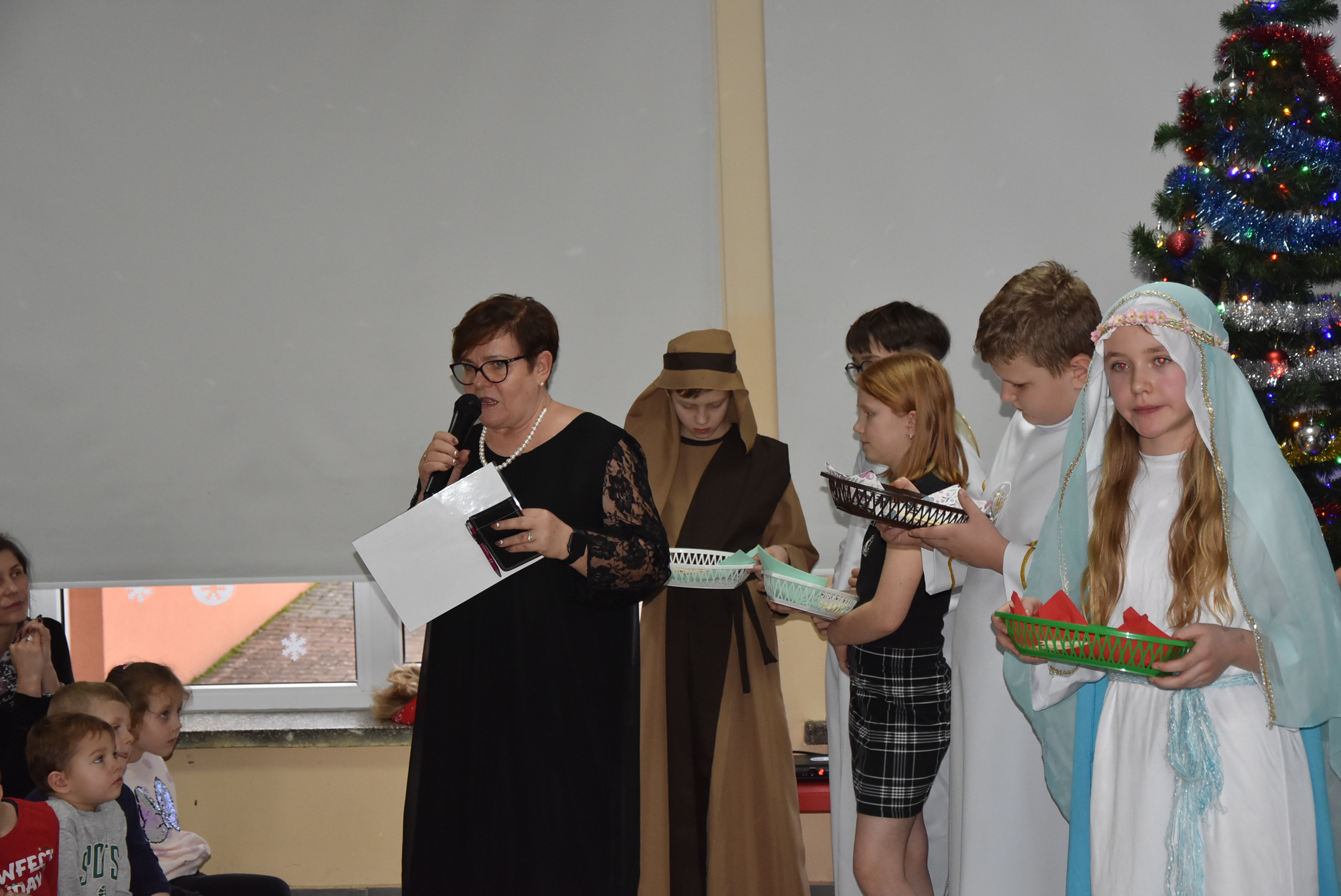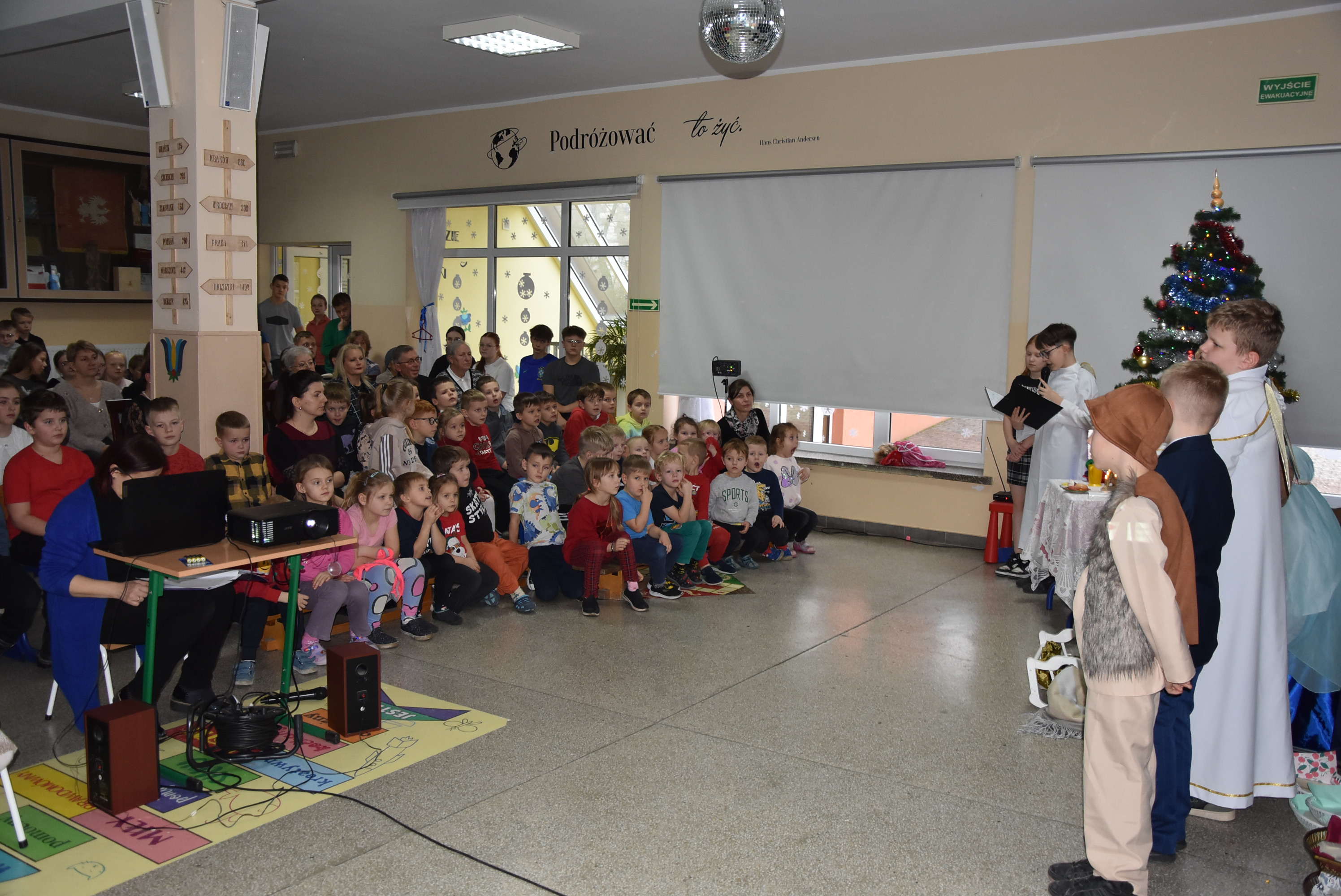 Podczas wydarzenia uczniowie z klasy IV zaprezentowali całej społeczności szkolnej oraz zaproszonym gościom wyjątkowe przedstawienie bożonarodzeniowe pt. „Czekanie na Boga”.