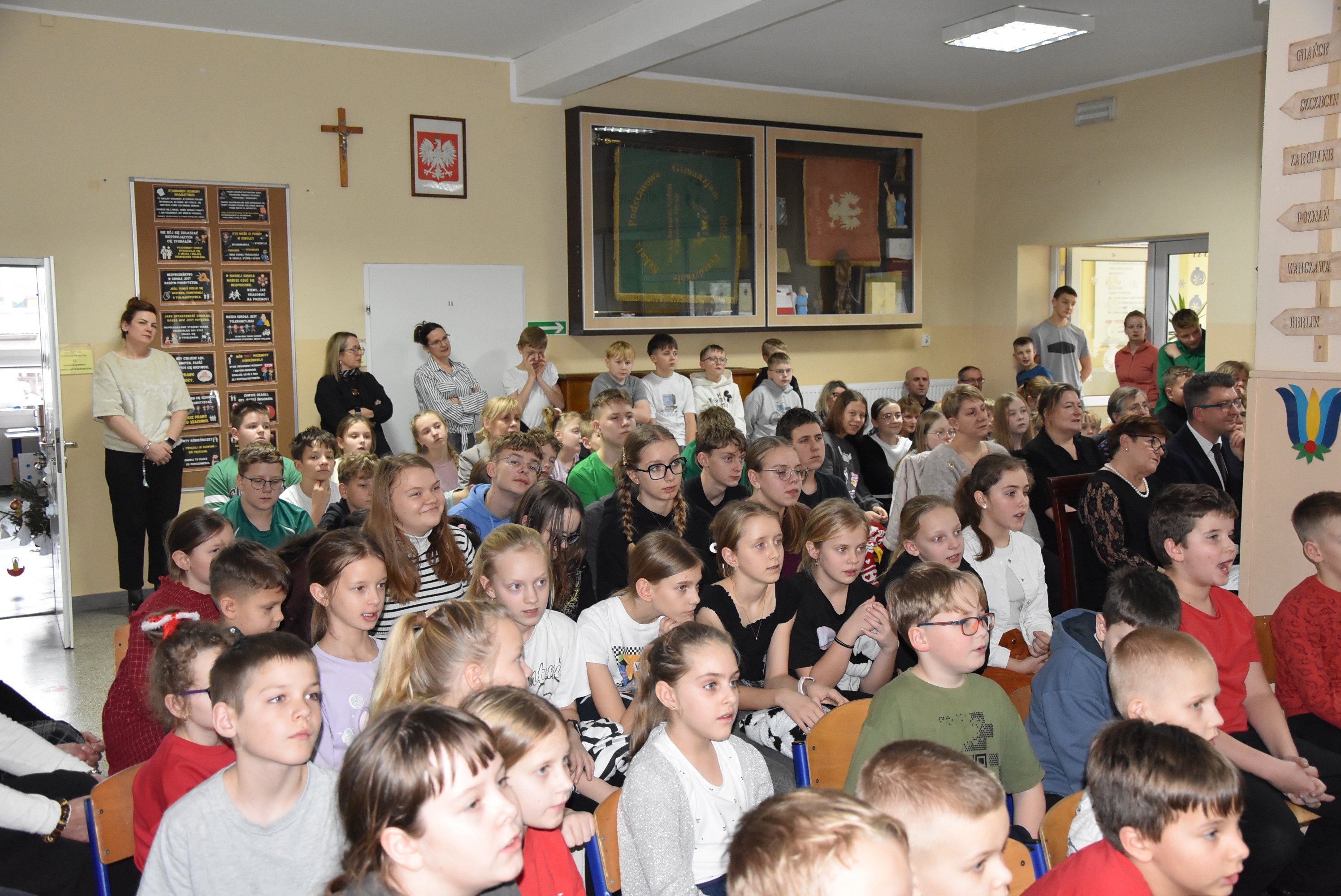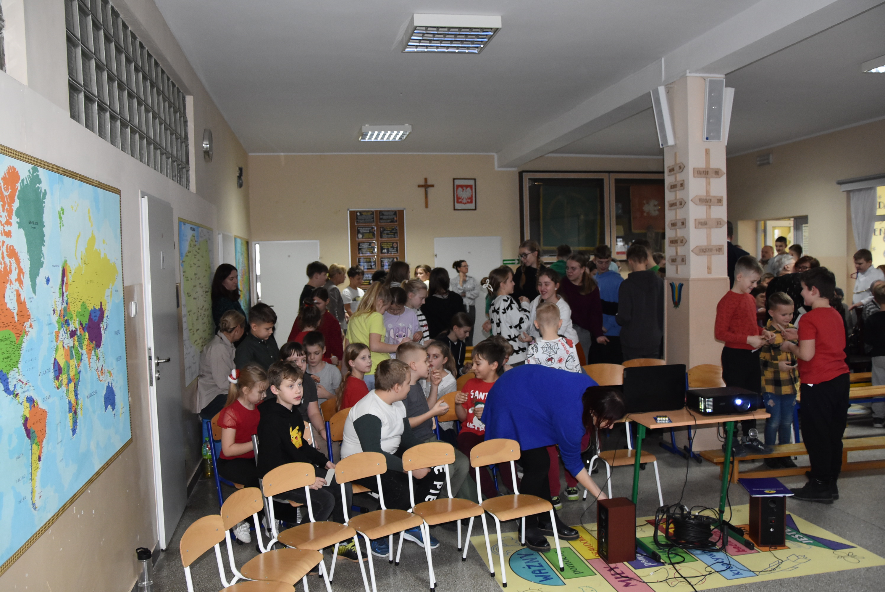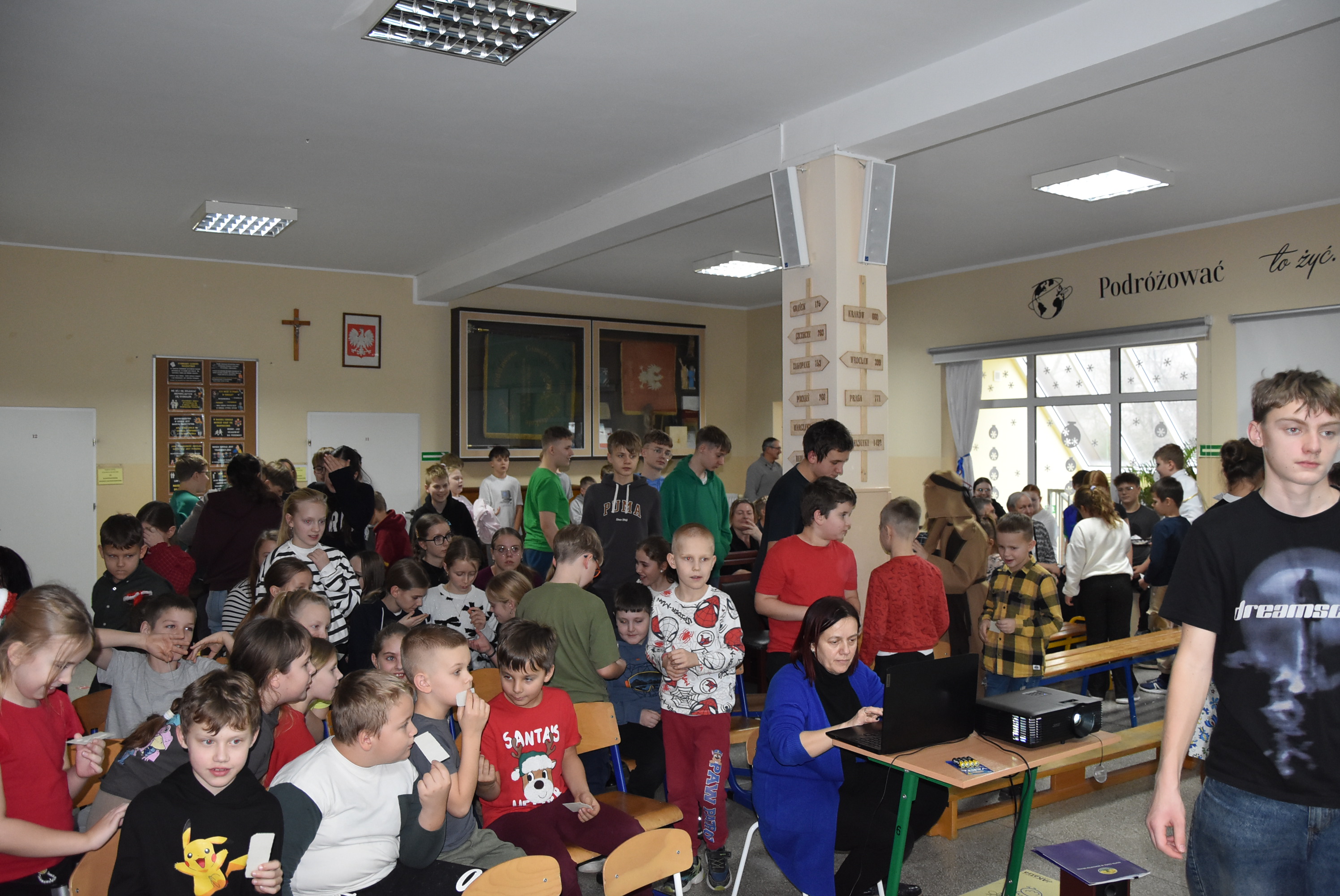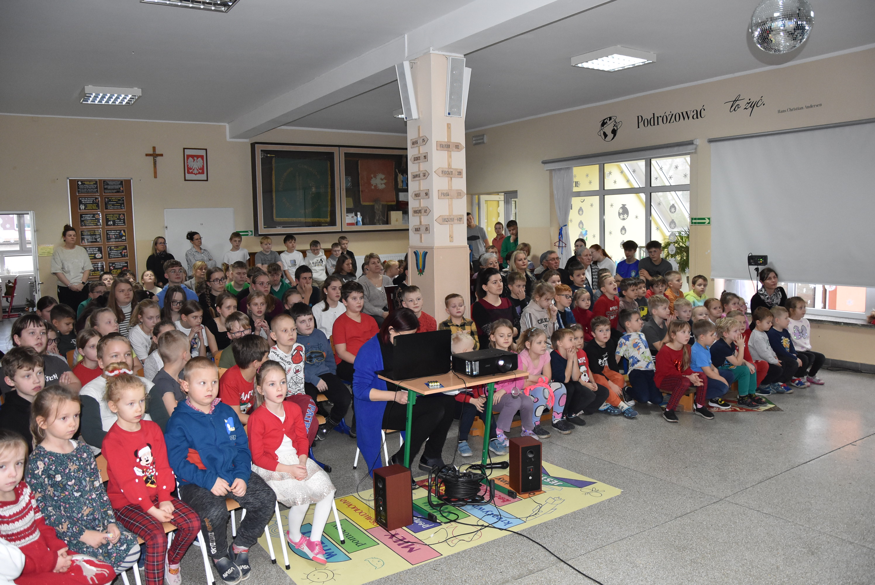 Podczas wydarzenia uczniowie z klasy IV zaprezentowali całej społeczności szkolnej oraz zaproszonym gościom wyjątkowe przedstawienie bożonarodzeniowe pt. „Czekanie na Boga”.