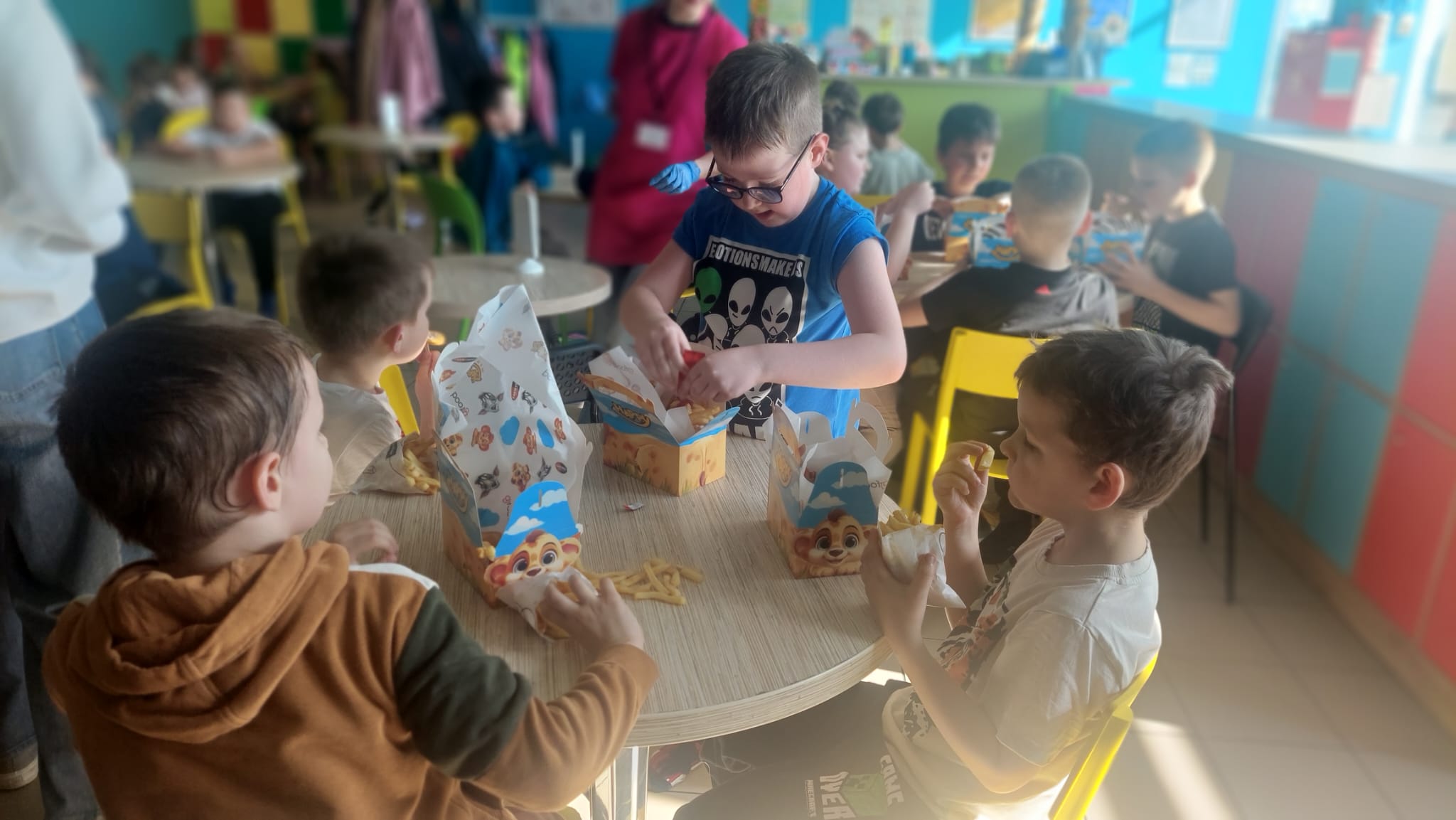 Kolejnym punktem programu była wizyta w sali zabaw Honolulu, gdzie uczniowie korzystali ze zjeżdżalni, torów przeszkód oraz trampolin. Wspólne aktywności sprzyjały integracji zespołów klasowych.
